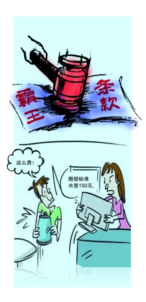 邱剑明:我认为这就是一种霸王条款。消费者过失损坏宾馆物品,是需要承担相应责任,但赔偿价格不能由宾馆说了算,需要服从物价部门的统一调控。因此,餐厅、宾馆要求消费者付出高于市场价数倍或更多的赔偿,明显违背了公平和等价有偿的原则。现实生活中,由于宾馆、酒店大多处于强势地位,消费者碰到赔偿事宜,往往都选择息事宁人。这样不仅牺牲了个体权益,也纵容了宾馆业者的“咄咄逼人”。当然,消费者在损坏了宾馆酒店的物品,被要求赔偿时,应该按宾馆酒店的直接经济损失(即现值)赔偿。当前,消费者的维权意识还较淡薄,遇到此类情况时往往妥协,放弃自己的权利,这种高价赔偿是一种霸王行为,违反了公平诚信原则。消费者要敢于说不,维护自身合法权益。