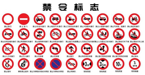 问:禁令标志有哪些? 答:通常禁令标志的颜色为白底、红圈、红杠、黑图案、图案压杠,形状为圆形、顶点向下的等边三角形。例如:常见的禁停标志、禁行标志。