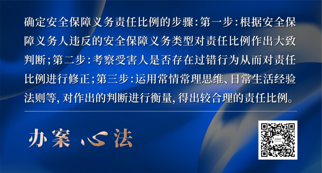 最后,司法实践的具体情况多种多样,安全保障义务的影响因素不胜枚举,司法认定的模式难以全面涵盖,在审判实践中还应通过常情常理的思维运用、日常生活经验法则的运用等对作出的判断再次进行衡量。