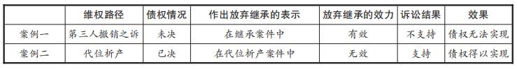 二、通过案例对比分析在继承人放弃继承权时,债权人维权之路径和问题