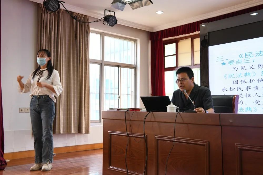 活动现场,立案庭庭长陈安昌在手语老师的协助下,以通俗易懂的语言和有趣的普法动画,详细解读《民法典》《未成年人保护法》《残疾人保障法》等与残障儿童相关的法律法规,引导老师和家长关注残障儿童等弱势群体的合法权益保护。