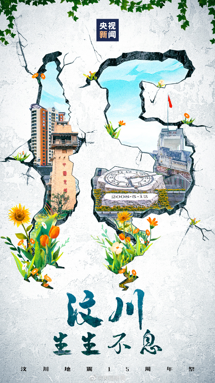 2008年5月12日14时28分,四川汶川发生8.0级地震。近7万人丧生,1.8万人失踪,37万余人受伤……15年过去,曾经撕裂的土地,今已平复;曾经受伤的人们,迈向新生。今天,缅怀逝者,也致敬重生,祝福汶川。(央视新闻、中国新闻网)