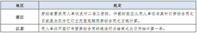 2.二倍工资差额自用人单位与劳动者补签劳动合同之日或是为双方已订立无固定期限劳动合同之日起一年申请仲裁。例如:浙江、江苏