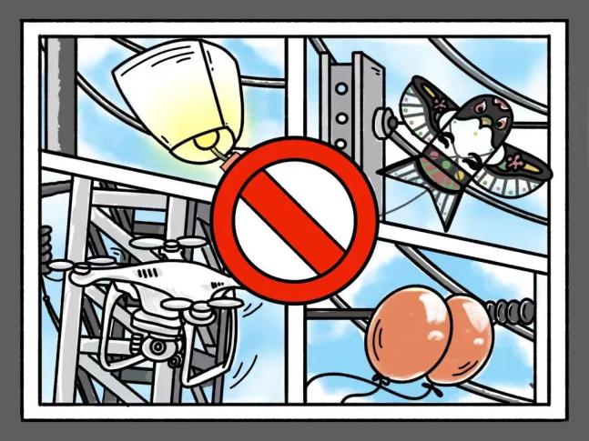 ●《安徽省铁路安全管理条例》第二十五条“在铁路电力线路导线两侧各500米的范围内,禁止升放风筝、气球、孔明灯等低空飘浮物体。”