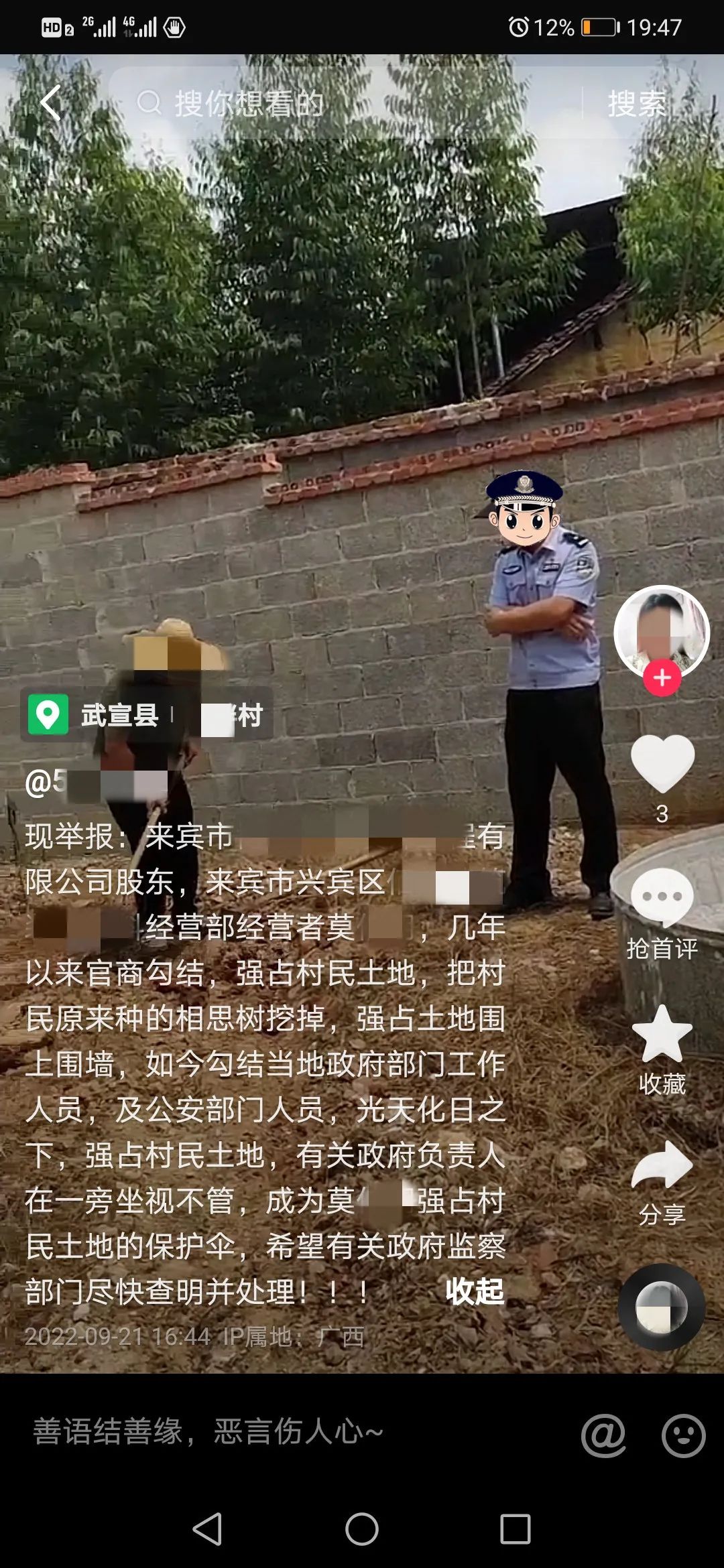 近日,武宣县公安局思灵派出所在工作中发现:有人通过抖音发布虚假视频信息。