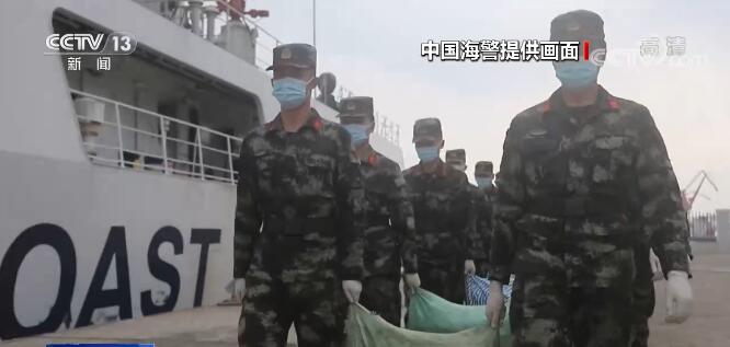 中国海警局直属第四局执法员:因为那个漂浮物也漂不远,我们马上打捞。捞的时候也是摇摆很大,站在那个甲板上,感觉整个人身体都(能)摸到海水那种感觉。