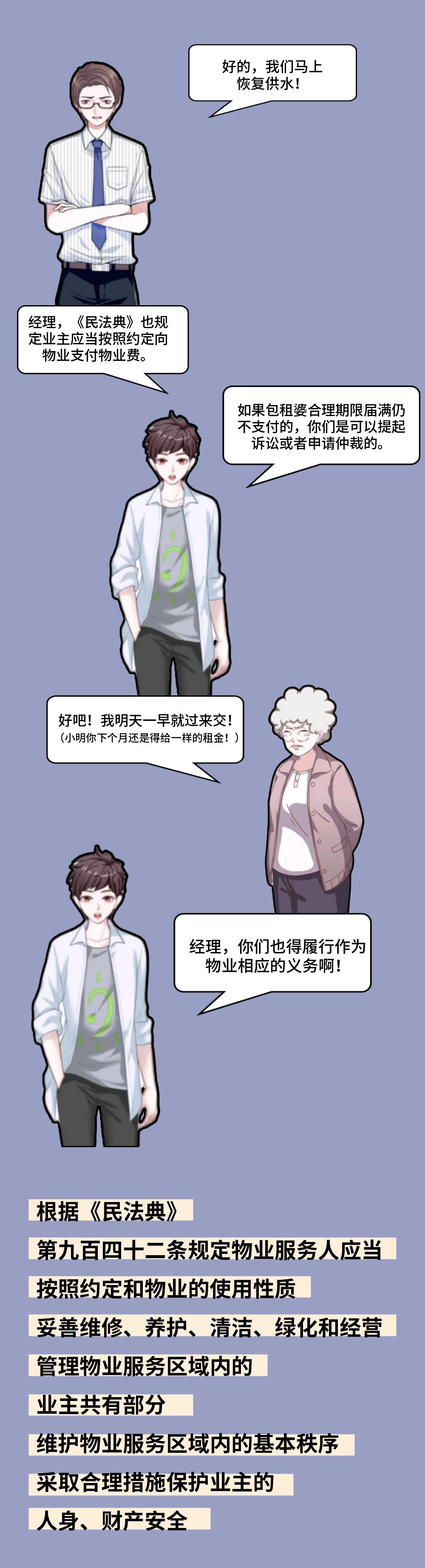 物业服务人不得采取停止供电、供水、供热、供燃气等方式催交物业费。