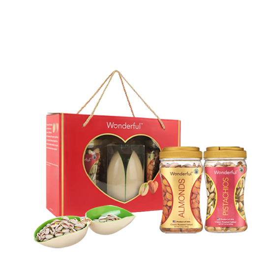 坚果是过年桌上必不可少的健康零食。在辞旧迎新、其乐融融的新春佳节,无论是惬意宅家,还是开心聚会,摆放一盘坚果,年味立刻扑面而来。今年春节,万多福为消费者们带来了“万多福万事多福惠享装礼盒900克”,以美味可口的坚果陪伴大家共庆新春佳节。礼盒以喜庆节日红为底色,用高档金色勾勒出爱心轮廓,承载着新年万事多福,幸福圆满的美好愿景。礼盒内含400g经典盐焗味开心果和500g经典盐焗味巴旦木各一罐,可满足坚果爱好者的多样味蕾需求。更令人惊喜的是礼盒内附赠一只别致的开心果造型碗,外观新颖又实用,陪伴大家在过年期间一起分享欢聚喜悦。