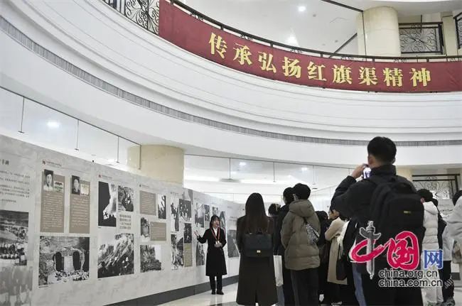 2023年11月28日,在河南郑州,大学生参观红旗渠精神主题展览。新华社记者 鲁鹏 摄