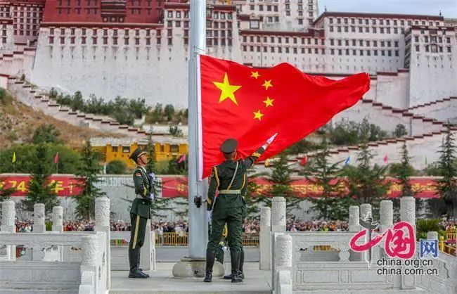 2023年10月1日,西藏自治区庆祝中华人民共和国成立74周年“升国旗、唱国歌”仪式在拉萨布达拉宫广场举行。当日,全国各地举行升旗仪式,庆祝中华人民共和国成立74周年。新华社记者 邵泽东 摄