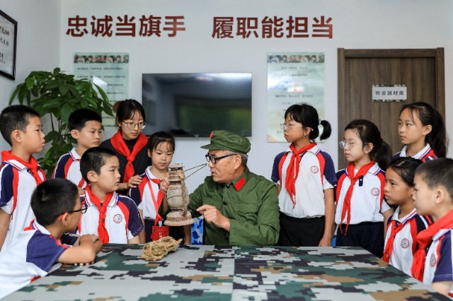 近日,浙江省湖州市长兴县吕山小学在吕山村老兵驿站聆听退役老兵讲红色故事。周洪峰 摄