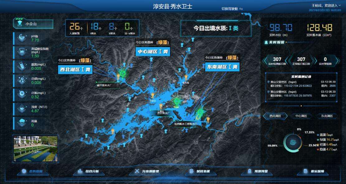 “从大屏上可以看到,整个千岛湖今天入湖断面的水质还是相当好的。”近日,在杭州市生态环境局淳安分局的生态环境监控中心,王裕成正通过显示大屏“巡视”着各个湖区的水质情况。