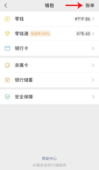 第三步:在钱包功能主界面,选择顶部的“账单”功能。