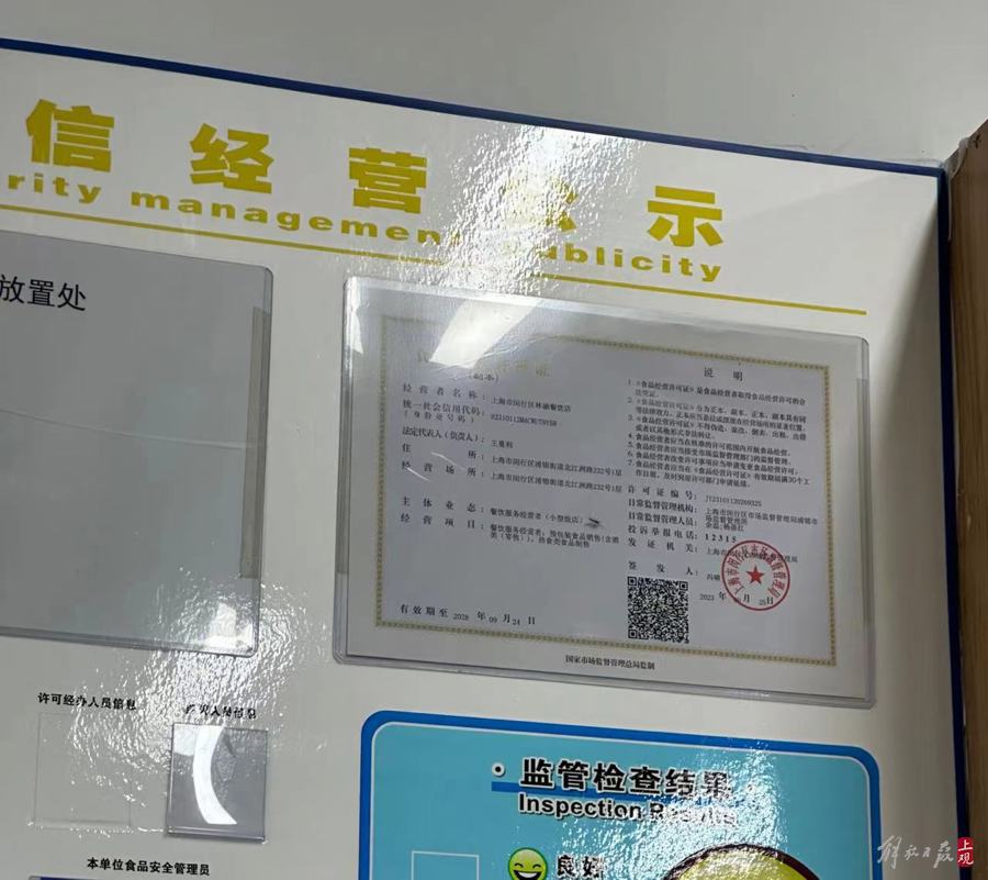 工商登记信息显示,8月29日,闵行区市场监督管理局已核准该店的营业执照,经营范围包括餐饮服务和酒类经营。不过,“小林”店内张贴的食品经营许可证,有效期自今年9月25日起至2028年9月24日,其中经营项目注明为,“餐饮服务经营者:预包装食品销售(含酒类(零售)),热食类食品制售”。居民分享给记者的照片信息显示,9月初,该店在尚未办理食品经营许可证的情况下,已经有营业之实。