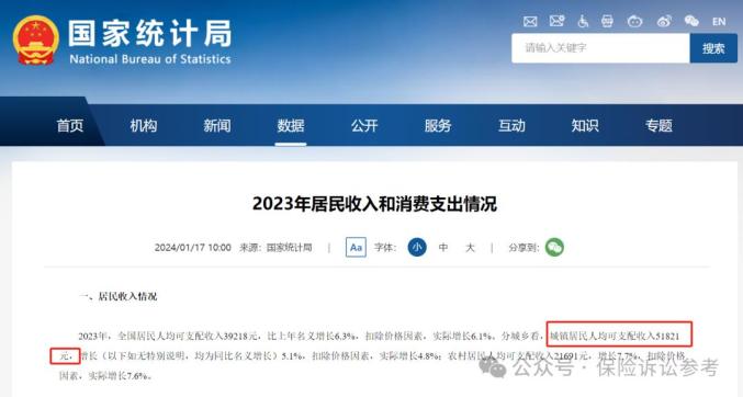 前言:2024年1月17日,国家统计局召开国民经济运行情况新闻发布会,发布会公布了2023年度全国居民收入情况,根据国家统计局公布的最新数据,2024年一次性工亡补助金标准调整为: 51821元×20=1036420元。