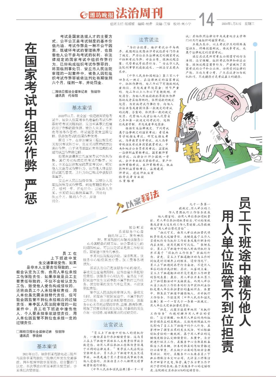【寒法案例】丨员工下班途中撞伤他人 用人单位监管不到位担责 轻触阅读原文