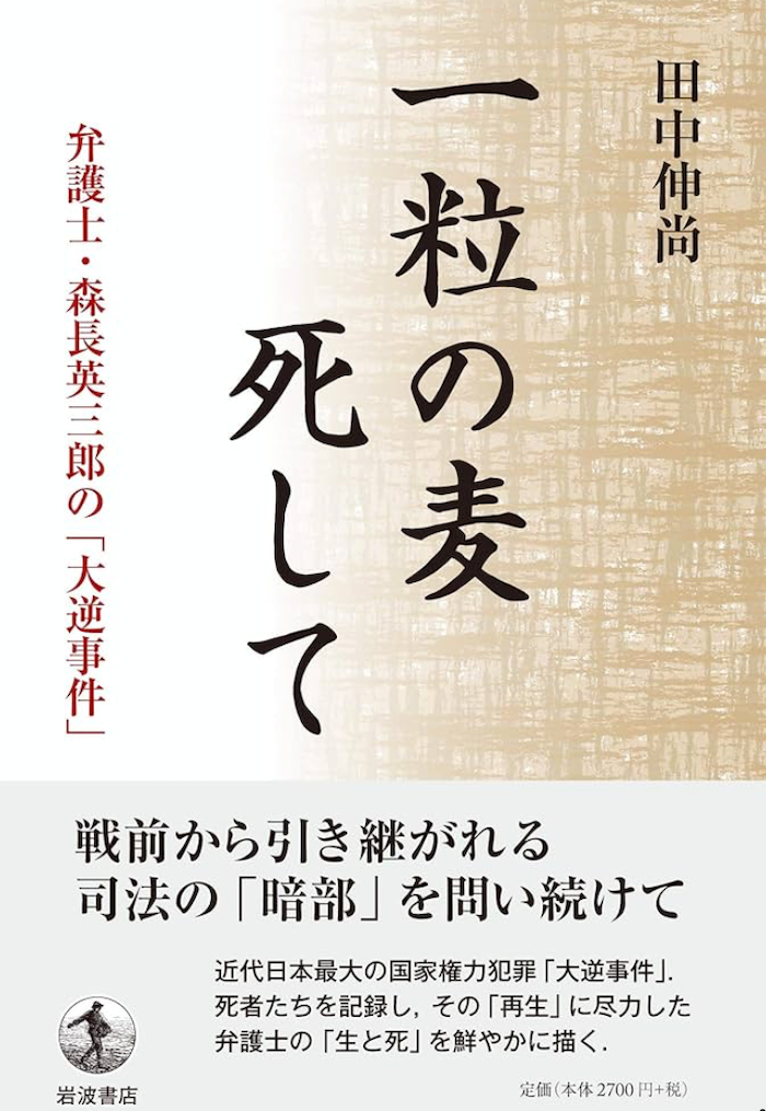 事实上,田中伸尚有关“大逆事件”的专著,除了《大逆事件:死与生的群像》外,还有多部。新近的著作就有《一粒麦子的死亡:森长英三郎律师的“大逆事件”》(一粒の麦死して-弁護士・森長英三郎の「大逆事件」,岩波書店,2019)。在这部独特的传记中,田中将视角聚焦在战后投身于“大逆事件”再审运动的森长英三郎律师,通过这位律师在战后日本社会奔走呼吁的一系列义举,从另一个角度解析了“大逆事件”对日本社会的长远影响。用田中本人的话来说便是:“明治的‘大逆事件’并未随着世纪舞台的转换而落下帷幕,尚未终结的它仍在继续上演。”