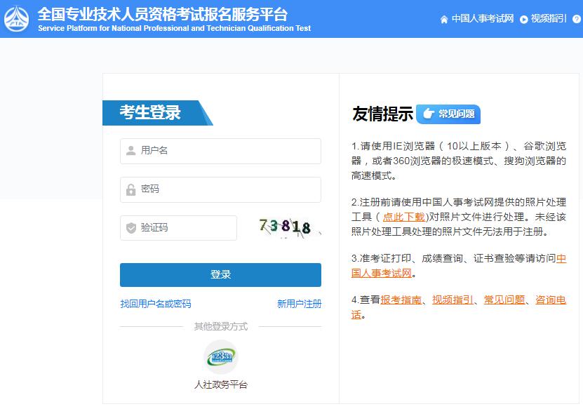全国专业技术人员资格考试报名服务平台入口: