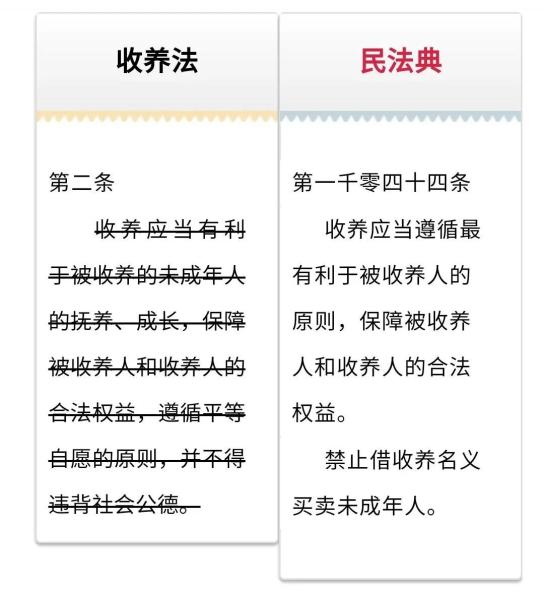 法官解析:民法典增设了收养的原则性条款,“最有利于被收养人原则”是未成年人利益最大化原则的延伸。同时规定禁止借收养名义买卖未成年人,能够避免部分名为收养实为买卖的不法行为,更好的保护被收养的未成年人的合法权益。