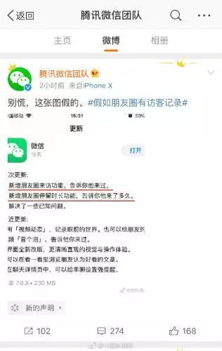 朋友圈新增访客记录功能?微信回应:别慌,假消息