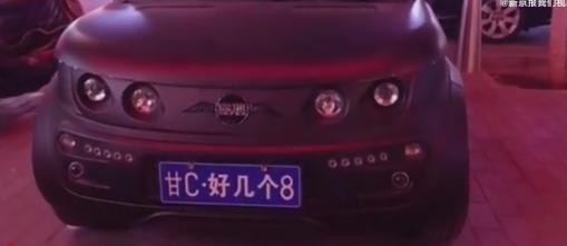 174.甘肃金昌一辆电动助力车车主悬挂奇葩车牌“甘C好几个8”,交警当场查扣。(澎湃新闻)
