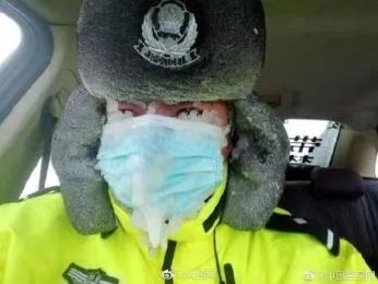 57.新疆救援一线民警口罩变冰雪面具,网友备受感动,纷纷点赞“蜀黍辛苦了”。(中国警察网)
