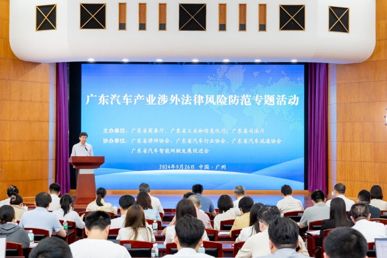 为贯彻落实国家和省关于加强涉外法治的决策部署,发挥广东省涉外法律服务资源优势,加强对广东省重点产业涉外法律风险防范的指导,广东省商务厅、广东省工业和信息化厅、广东省司法厅于9月26日联合举办广东汽车产业涉外法律风险防范专题活动,组织企业和涉外律师交流经验做法,并开展专题培训,指导帮助企业做好风险防范应对,助力我省汽车产业提升国际竞争力。