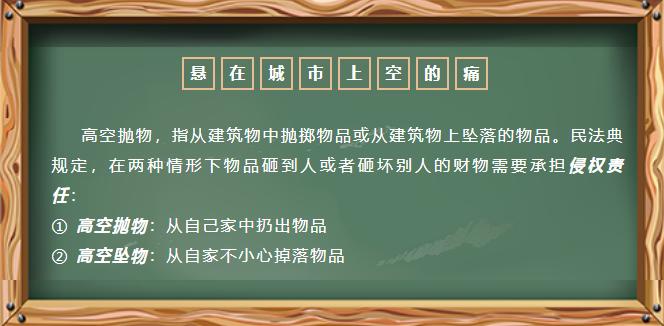 2021年3月1日,《中华人民共和国刑法修正案(十一)》生效,高空抛物的正式入刑,释放了予以严惩的信号,让责任人付出了更高的法律代价,同时也更大程度上起到警示功能,希望人们防微杜渐,自警、自律、自制。