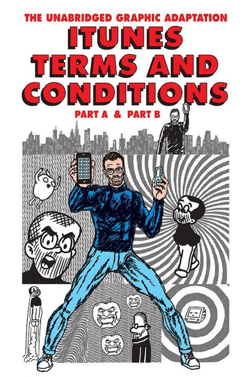 不过,Sikoryak聪明的地方在于,他找到了苹果公司这样颇具知名度的品牌背书,容易引发读者的兴趣;而漫画版服务条款的内容设置,又在满足好奇心的同时也降低了阅读门槛。苹果公司一直都没有对他的行为作出回应,这也是Sikoryak的担忧所在——如果苹果公司出面阻止,那么他很有可能无法将这个系列持续下去。