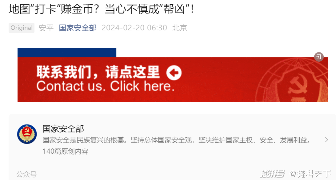 国安部发出警告:境外公司利用加密货币诱使人员非法采集空间数据,当心不慎成“帮凶”