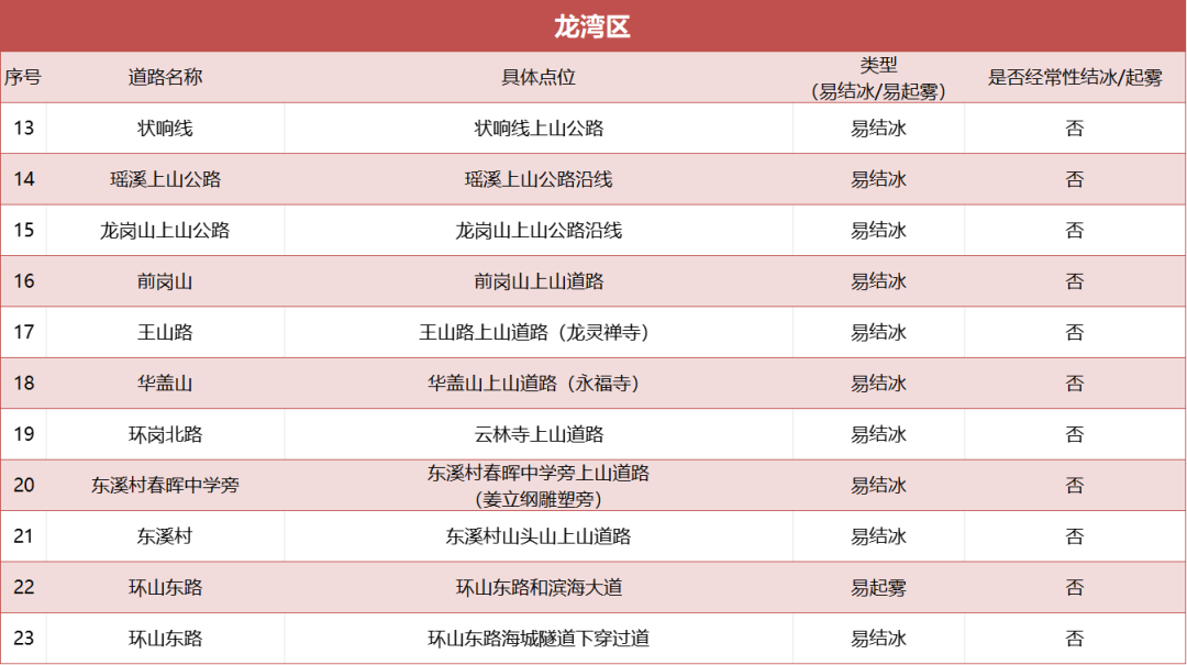 温州公安交警通过隐患排查梳理出易结冰、易起雾路段,驾驶员朋友们经过以下路段时请务必小心驾驶。
