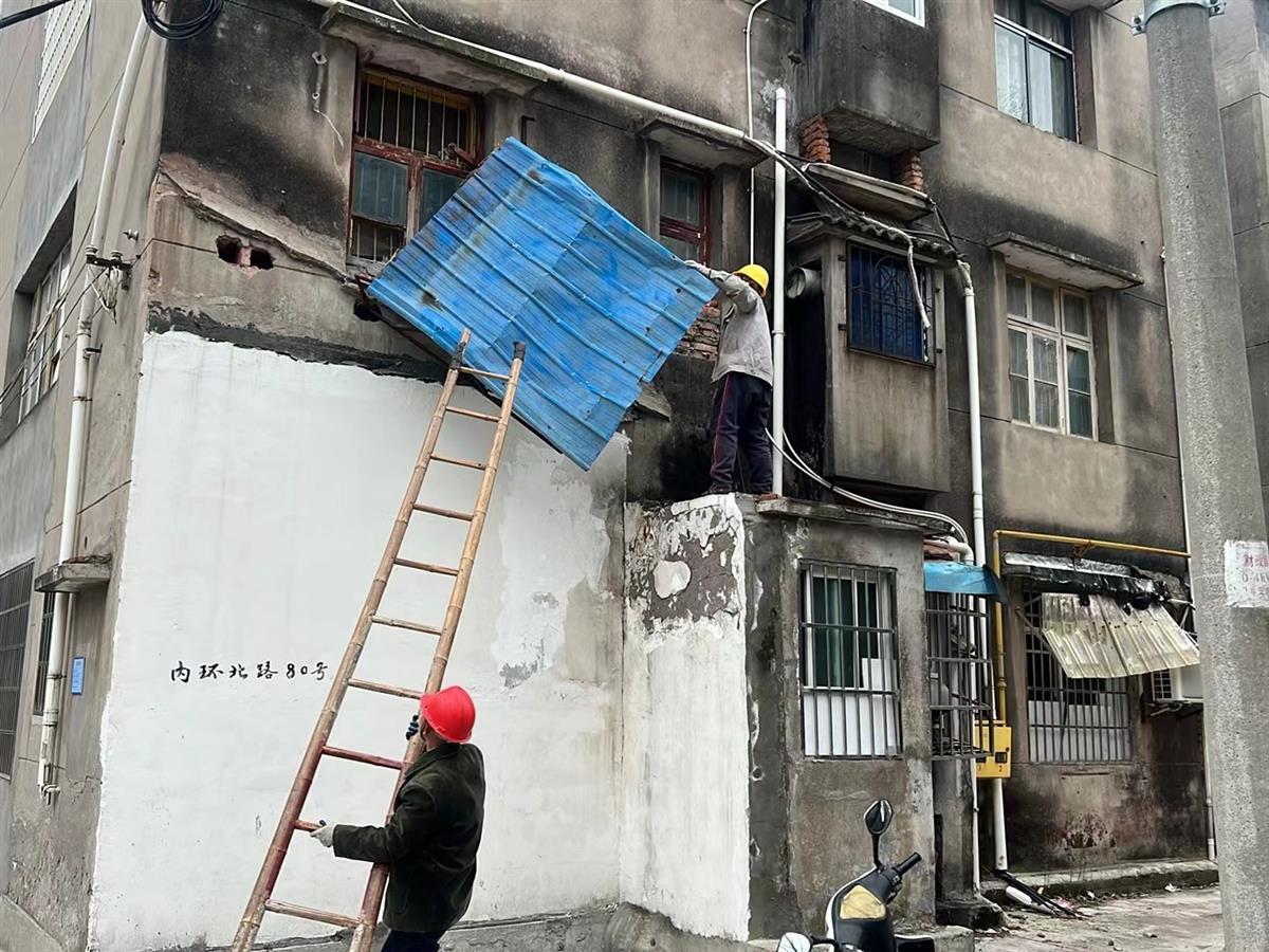 郢城镇建好配齐镇村两级应急队伍,确保各村(社区)提前准备好挖机(铲车)2台、储备劳力50人。做好24小时应急值班和应急物资、除雪物资储备。同时加强重点区域防范,全面排查风险隐患,组成专班对全镇危房、菜市场、在建工地、钢构厂房、户外广告牌、农业大棚等场所进行风险隐患排查整治,做到早发现、早撤离、早拆除。全力做好困难群众帮扶,高度关注孤寡、独居老人等困难群体基本生活状况,上门进行极端天气温馨提示、用电用气安全提示等服务。