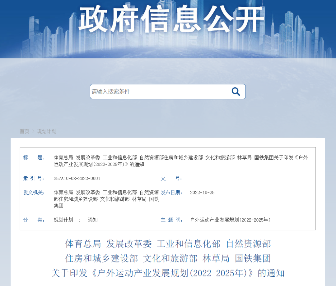 为贯彻落实《中共中央办公厅 国务院办公厅关于构建更高水平的全民健身公共服务体系的意见》《国务院办公厅关于促进全民健身和体育消费 推动体育产业高质量发展的意见》,我们研制了《户外运动产业发展规划(2022-2025年)》。现印发你们,请认真组织落实,更好引导和推动户外运动产业发展。