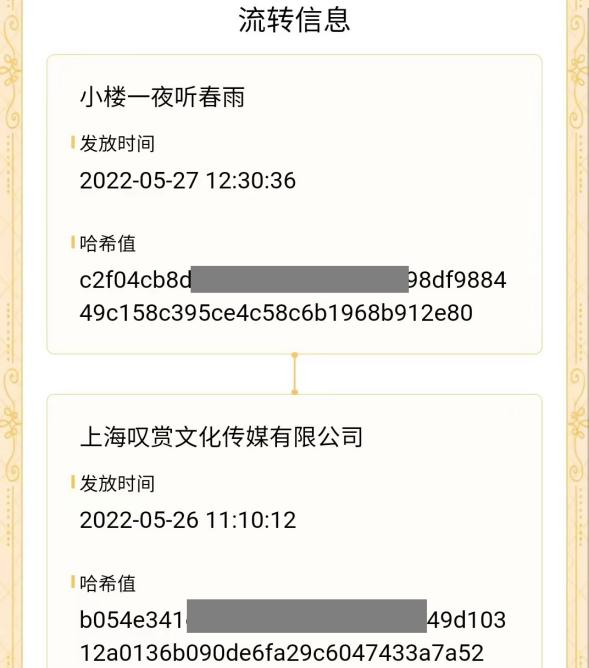 由此可见,消费者手中的数字藏品实际是由两部分组成:底层作品虚拟化后的数字作品(存储在某个服务器上)和区块链上生成的哈希值(购买权利凭证,用于证明XXX购买了某数字藏品,该藏品发行量,上链时间)。其中,哈希值不可篡改地存在于中国的联盟链上,仅能证明购买行为的存在,而不能替代虚拟化的作品本身。据业内人士观察,将数字作品整体上链的行为极其罕见,因为对于发售平台和发行方而言,占用空间过大、租赁服务器成本过高。