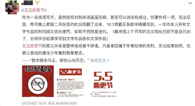 过去五天,阅文集团三度发布声明,回应“全面免费”、“占有作者版权”等争议问题,依然未能有效安抚作家们的情绪。5月5日,网文作者发起“五五断更节”活动,希望通过停止更新的方式维护权益。