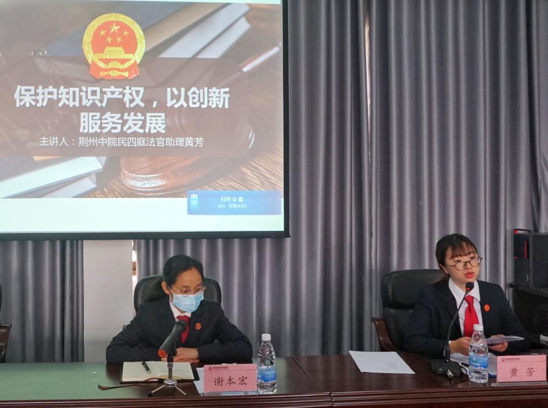 4月23日,荆州中院联合荆州市开发区市场监督管理局举办了知识产权保护知识培训会,为荆州地区三十余家高新企业代表和技术骨干进行了关于知识产权和商业秘密司法保护的专题讲座,通过法条普及和以案释法的方式,提高了企业保护知识产权的意识和法律知识。