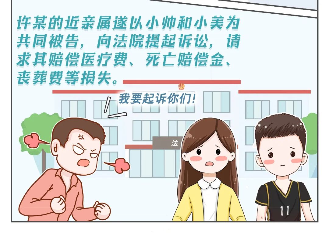 小帅和小美的行为是导致许某的近亲属不能从交强险中获得赔偿的共同原因,故判令小帅和小美按照交强险医疗费用赔偿限额及死亡伤残赔偿限额共计198000元,不区分事故责任比例向死者许某家属承担赔偿责任,剩余损失(即交强险赔偿范围外的其他部分),按照责任比例由驾驶人小美对其中的40%承担赔偿责任。