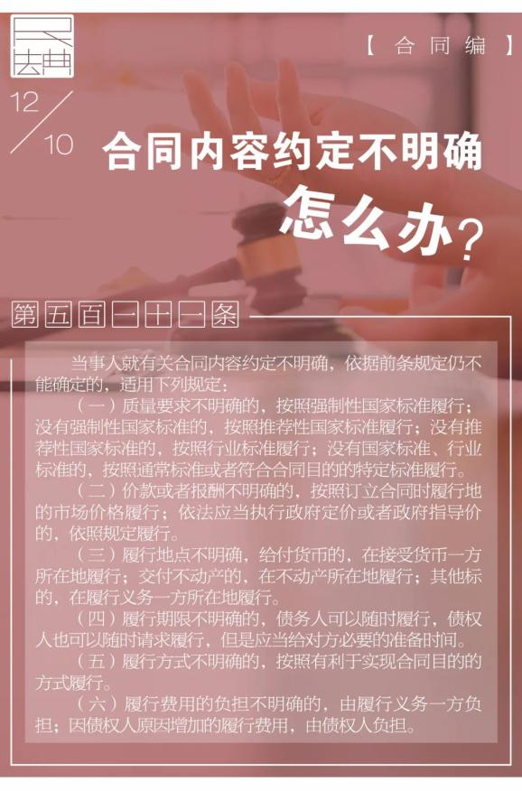 原标题:《【民法典】每日一“典”:合同内容约定不明确,怎么办?》