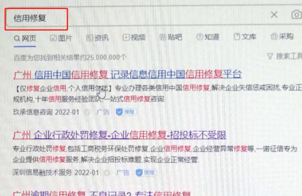 我们搜索“信用修复”关键词
