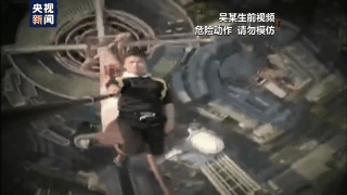 画面中,吴某没有系安全带、甚至压根没有任何保护措施,攀爬各种办公楼、铁塔、烟囱等高层建筑;还要单手举着自拍杆、摄像设备,给自己拍摄。视频中有很多这样的场景,吴某在楼顶边缘行走、跳跃、翻跟头、骑平衡车,将整个身体挂在高楼外,强风作用下身体摇摇欲坠。