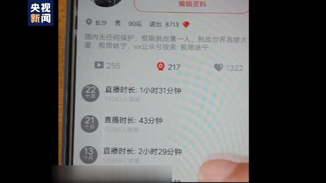 中国政法大学传播法研究中心副主任 朱巍:观众打赏,有的时候是鼓励,有的时候是一种对赌。所以我们其实在看的过程中也要反思,如果大家都在说不要这样爬楼、千万不要爬楼,而且你没有带安全带、旁边没有人,一旦出现问题,连救你的人都没有。所有人都会劝他的,那你想想吴某还会爬楼吗?