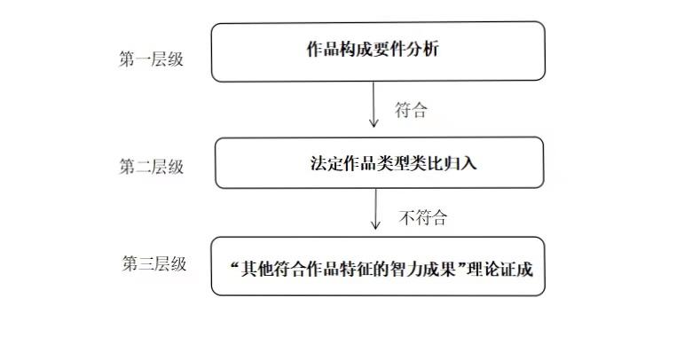 作品类型演变是缓慢而渐进的,即使需要将新的表达形式纳入作品保护范围,也应当应秉承审慎性保护原则,有利于著作权法保持法律关系的确定性与保护内容的可预期性。因此,通过对作品类型兜底条款司法适用的方法证成分析,笔者认为可构建新作品类型著作权保护“三步走”路径(见图1)。