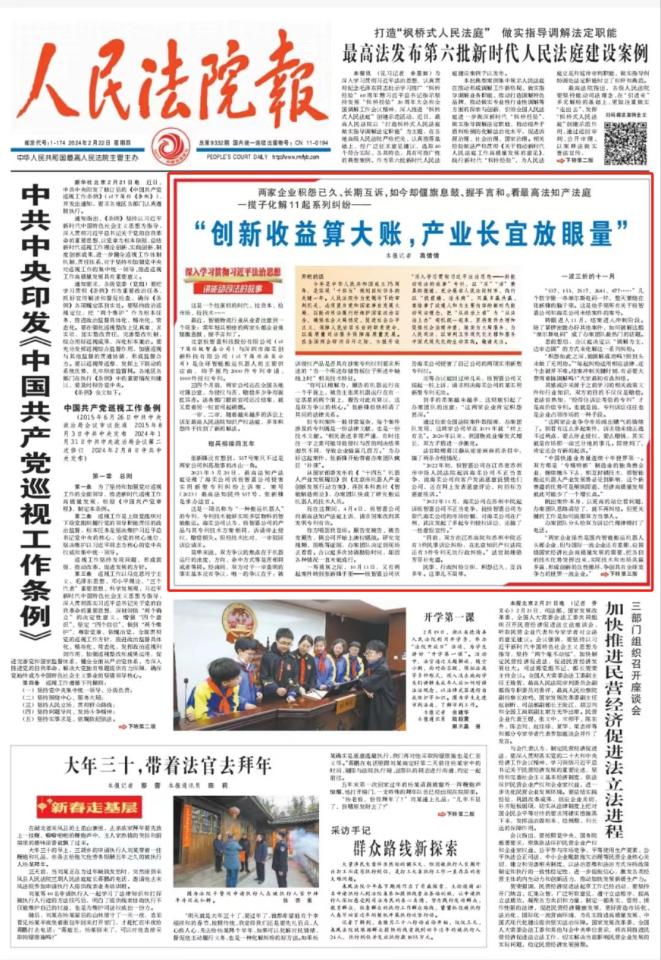 结案不到一个月,12月11日至12日,中央经济工作会议召开。最高法知产法庭第一时间组织学习了此次会议重要精神。这次会议强调要充分激发各类经营主体的内生动力和创新活力,以科技创新引领现代化产业体系建设,发展新质生产力。