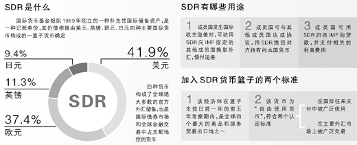 今年11月,国际货币基金组织(IMF)执行董事会将正式讨论是否将人民币纳入特别提款权(SDR)货币篮子,讨论的主要依据是IMF向执行董事会提交的有关技术评估报告。人民币如成功“入篮”并于2016年10月正式生效后,将成为继美元、欧元、英镑和日元后的第五个SDR货币,也将是第一个来自发展中国家的SDR货币。