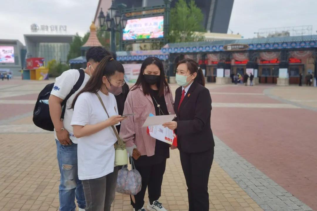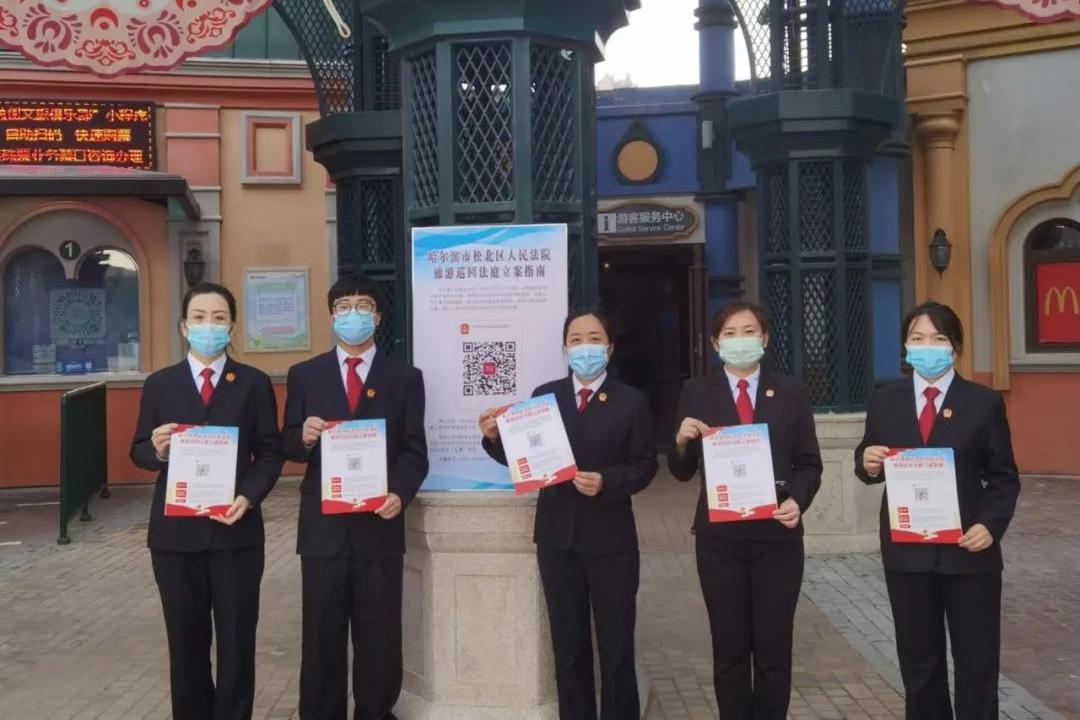 在第12个“中国旅游日”,松北区法院旅游巡回法庭干警走进哈尔滨融创文旅城等景区,通过发放宣传单及现场讲解等方式,向游客和景区工作人员普及法律知识,并将专门制作的《旅游巡回法庭立案指南》标牌挂在景区醒目位置。活动当日共发放各类普法宣传单100余份,现场解答群众咨询20余人次。
