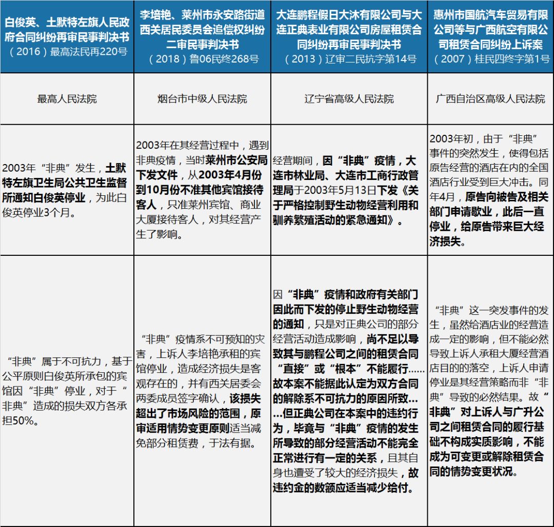 关于法院是如何判定“非典”疫情是否构成不可抗力或情势变更的,先看如下四个“非典”时期的经营遭受影响的案例: