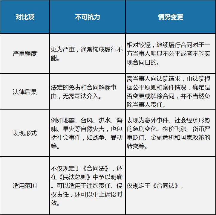 二、不可抗力与情势变更之法律规定及区别