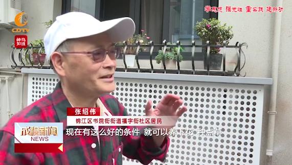 社区居民张绍伟:“老年人的退休生活比较单调,现在有这么好的条件,就可以养下花、种点草。闲时也可以出来,院坝很整洁,大家可以出来坐一下,休闲一下,邻居之间多交谈,感情也融洽了。”
