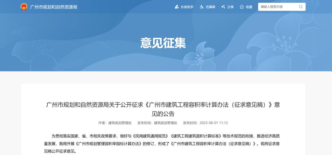 近日,《广州市建筑工程容积率计算办法(征求意见稿)》(下称“征求意见稿”)在广州市规划和自然资源局网站上进行公示。