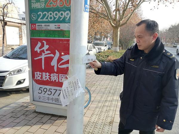 对保定市区内大街小巷的路灯设施进行巡查。发现影响路灯设施安全性、美观性的现象,如非法广告、张贴物等,通过采取现场清理、协商摘除、喷漆覆盖等方式对其进行及时处理,并对无法现场处理的情况及时上报。